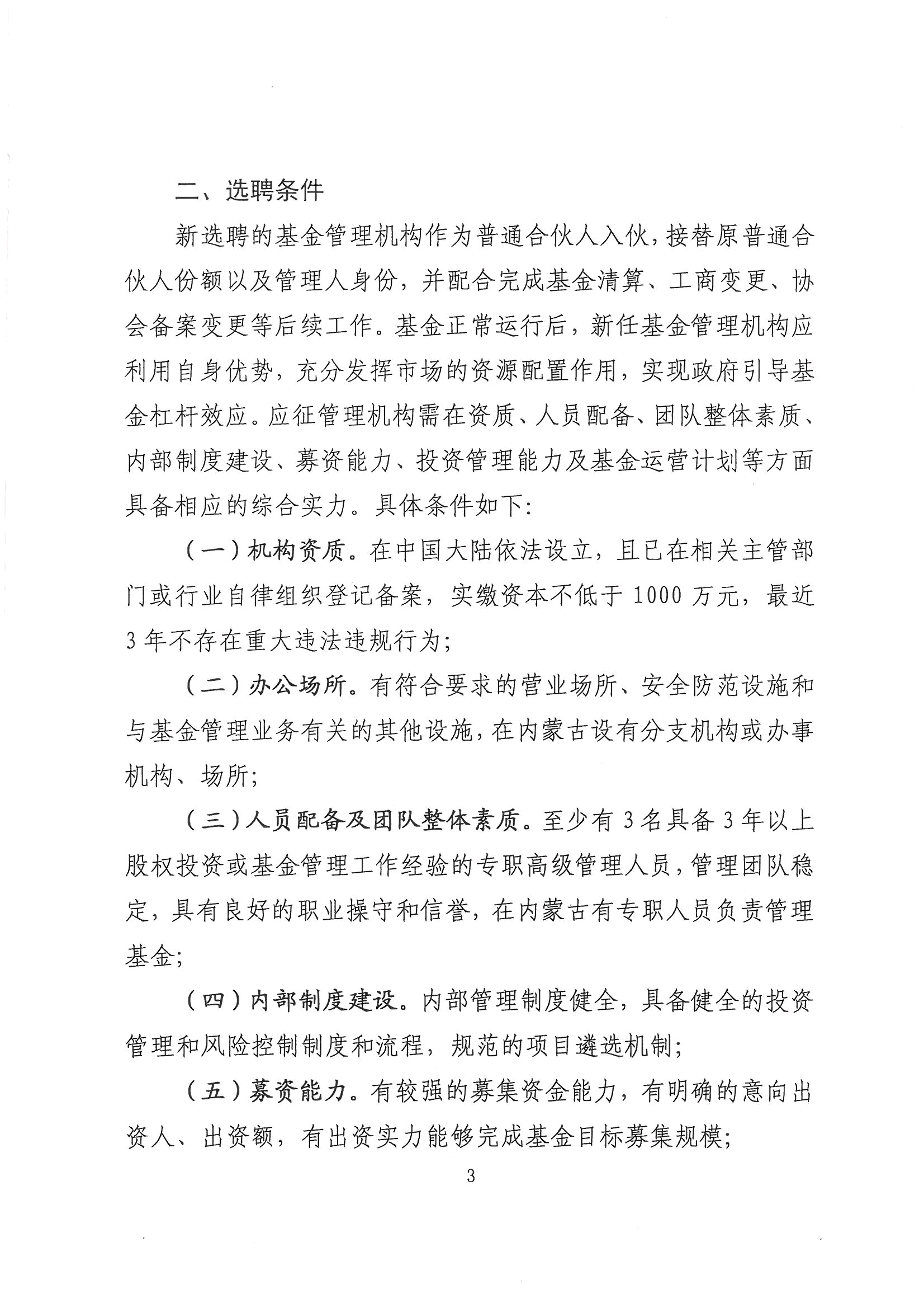 關(guān)于遴選內(nèi)蒙古文化產(chǎn)業(yè)發(fā)展基金管理機構(gòu)(普通合伙人/執(zhí)行事務(wù)合伙人)的公告
